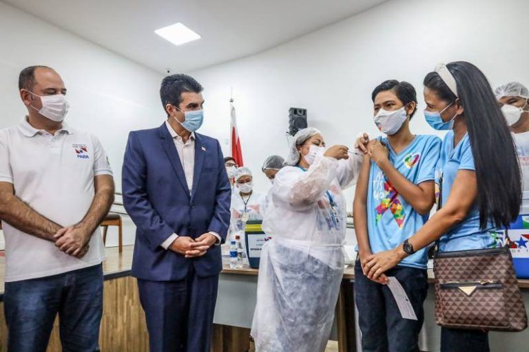 O governador do Estado, Helder Barbalho, realizou na manhã desta segunda-feira (23) um ato simbólico que marca o início da vacinação contra a Covid-19 para pessoas entre 12 a 17 anos, no Pará. A imunização começará pelo grupo de crianças e os adolescentes com deficiência permanente, com comorbidade ou privados de liberdade, conforme lei Lei 14.124, que trata do Plano Nacional de Operacionalização da Vacinação.