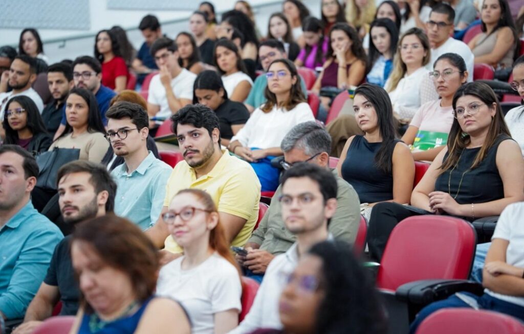 O auditório da Escola de Saúde de Goiás ficou lotado na manhã desta segunda-feira (2/3), durante o evento de acolhimento dos novos residentes médicos, uni e multiprofissionais da Secretaria de Estado da Saúde de Goiás (SES-GO). Ao todo, 297 profissionais participaram do encontro, que reuniu residentes, preceptores, tutores e demais servidores da saúde estadual.