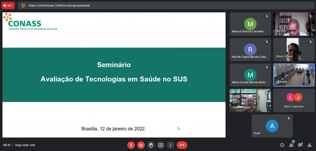 Em um seminário interno realizado na manhã desta quarta-feira (12), a assessoria técnica do Conass debateu a Avaliação de Tecnologias em Saúde (ATS) no contexto do SUS. O encontro contou com a participação do médico Luis Correia que é consultor do Conass e representante da instituição na Comissão Nacional de Incorporação de Tecnologias no SUS (Conitec) e de técnicos do Conasems, Cristina Sette e Helton Chaves.