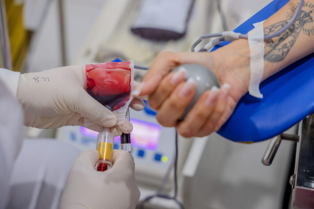 Após a doação, o sangue passa por um processo de fracionamento, que permite a separação de seus componentes: