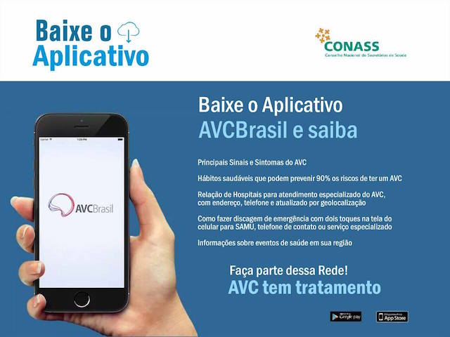 Neste ano, temos como inovação o lançamento do aplicativo AVC Brasil, ferramenta para celulares smartphones e tablets, que pode ser baixada gratuitamente nas lojas virtuais dos sistemas ANDROID e IOS.