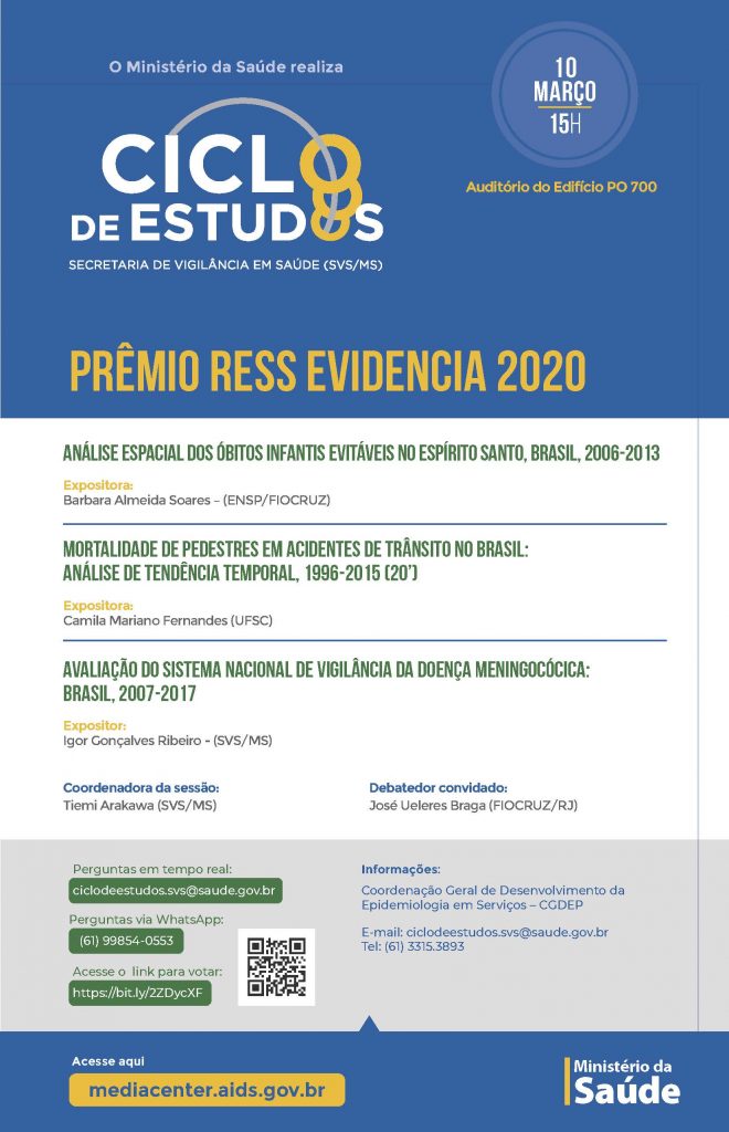 A primeira sessão do Ciclo de Estudos da SVS, programada para 2021, terá como tema central o “Prêmio RESS Evidencia 2020” e acontecerá na quarta-feira dia 10/03/2021, das 15h00 ás 17:00, em formato virtual.