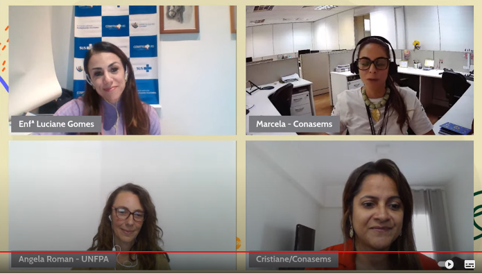 Participaram da live, além da vice-presidente do Conasems e da representante do UNFPA, a oficial do Projeto Enlace, Angela Roman; a líder na América Latina para Impacto Comunitário da Johnson & Johnson, Regiane Soccol; a assessora técnica do Conasems, Marcela Alvarenga; e a enfermeira obstétrica da Secretaria Municipal de Saúde de Piratini/RS, Luciane Gomes, que falou sobre a aplicação do Guia na rotina das unidades de saúde.