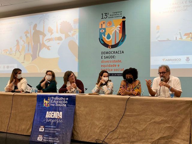 Ainda na tarde do dia 19 de novembro, o Conass foi representado por Haroldo Pontes na mesa de abertura do Simpósio da Gestão do Trabalho e Educação na Saúde. Além do representante do Conass, estiveram presentes na mesa de abertura a presidente da Abrasco, Rosana Onocko; a presidente do 13º Congresso Brasileiro de Saúde Coletiva, Isabela Cardoso; e a coordenadora do GT Gestão do Trabalho e Educação na Saúde da Abrasco, Janete Castro.