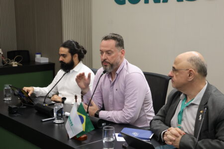 O assessor Sandro Terabe apresentou o GitConass, enfatizando a criação de comunidades, a partilha de soluções entre os estados e iniciativas de capacitação em inteligência artificial. Segundo ele, o objetivo é ampliar a colaboração técnica e promover maior autonomia das equipes estaduais no desenvolvimento de soluções digitais.