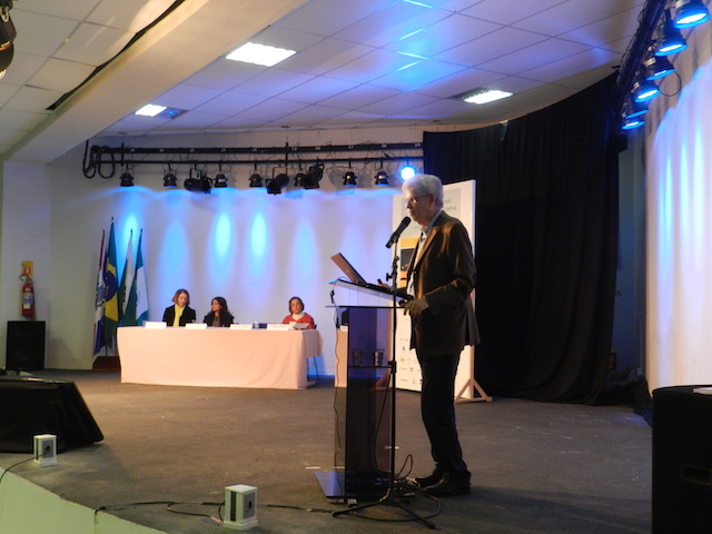 Marise Dalcuche, da diretoria geral da SESA e chefe do Núcleo de Descentralização do SUS no Paraná, apresentou a experiência do Estado, cuja base é o modelo proposto pelo professor Eugênio Vilaça, com diretrizes básicas para o atendimento na Atenção Básica à Saúde.