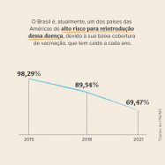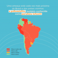 Graças à vacinação, a pólio foi eliminada das Américas em 1994, sendo a primeira região do mundo a alcançar esse resultado. Mas essa conquista pode ser perdida se o índice de cobertura de vacinação continuar tão baixo quanto está hoje, em 69%, muito longe do ideal de 95% ou mais. Atualmente, o Brasil é um dos países das Américas com alto risco para reintrodução dessa doença, devido à baixa cobertura de vacinação no País, que tem caído a cada ano. A boa notícia é que temos a solução para melhorar esse cenário: a vacina, que é a única medida de prevenção contra a pólio.