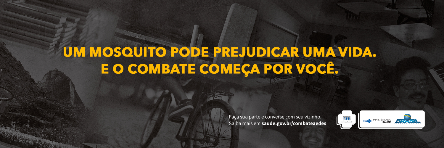 CAMPANHA – Desde o dia 24 de novembro, circula em todo o país a nova campanha publicitária de combate ao mosquito Aedes aegypti, que chama a atenção da população para os riscos das doenças transmitidas pelo vetor e convoca a todos ao seu enfrentamento. O objetivo é mostrar que o combate à proliferação do mosquito começa dentro da própria casa, sendo responsabilidade de cada um, podendo gerar mudança positiva na vizinhança. O material alerta: “Um mosquito pode prejudicar uma vida. E o combate começa por você. Faça sua parte e converse com seu vizinho”. A campanha é veiculada na TV, rádio, internet e redes sociais.