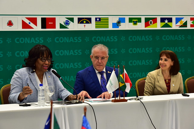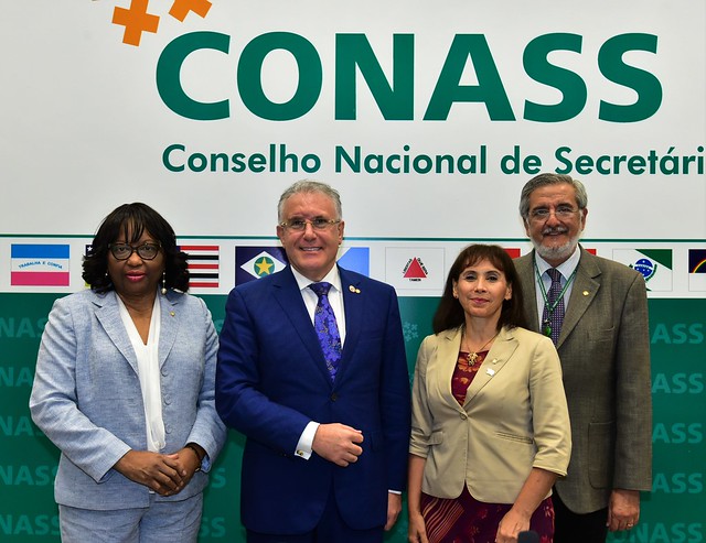 A comitiva da Organização Pan-Americana da Saúde (Opas), da Organização Mundial da Saúde (OMS) participou nesta quarta-feira (24) da Assembleia do Conass. A diretora geral da Opas, Carissa Etienne, foi recebida pelos gestores estaduais de saúde e falou que estar no Brasil é um grande aprendizado para o fortalecimento da saúde nas Américas, onde a saúde está alinhada com os conceitos do Sistema Único de Saúde (SUS), reiterando que o acesso à saúde de qualidade é direito de todos e dever do Estado.