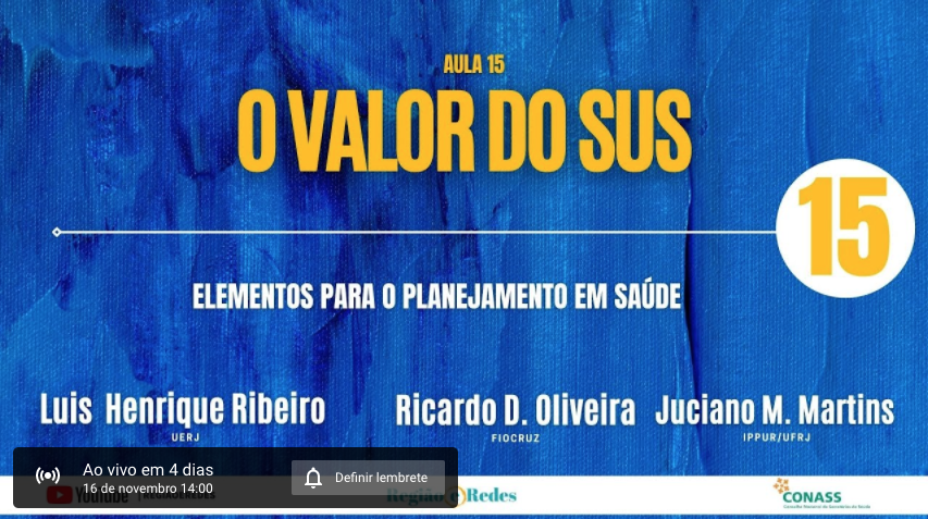 A Plataforma Região e Redes convida você para o novo encontro do programa “O valor do SUS” com o tema ” Elementos para a regionalização da saúde no Brasil”.
