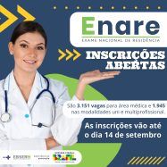 Brasília (DF) – As inscrições para os candidatos ao Exame Nacional de Residência (Enare), abriram nesta quarta-feira (23) e vão até dia 14 de setembro. São ofertadas mais de cinco mil vagas, distribuídas em 3.157 na área médica e 1.945 nas modalidades uni e multiprofissional, destinadas a profissionais de medicina e outras áreas da saúde, em diversos programas de 114 instituições de todo o país.