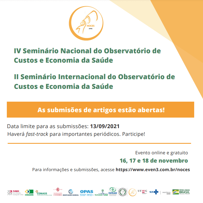 As submissões de artigos para o IV Seminário Nacional do Observatório de Custos e Economia da Saúde e II Seminário Internacional do Observatório de Custos e Economia da Saúde estão ABERTAS!
