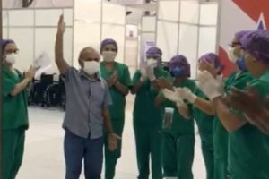 Na saída, ele recebeu aplausos da equipe de saúde e agradeceu. “Estou curado, graças à Deus e a essa equipe que cuidou de mim”, disse o idoso em um vídeo gravado na sua despedida do hospital.