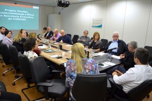 Com vistas ao aprimoramento das atividades da sua Secretaria Executiva, o Conselho Nacional de Secretários de Saúde (Conass), vem desenvolvendo ao longo de 2018 o projeto Gestão, Sustentabilidade e Ética, que integrará o Programa de Integridade no âmbito do Conass, com vistas à obtenção de Certificação Pró Ética da Controladoria Geral da União (CGU), em 2021. O programa e o projeto foram apresentados à equipe em reunião da Assessoria Técnica do Conass nesta segunda-feira (17).