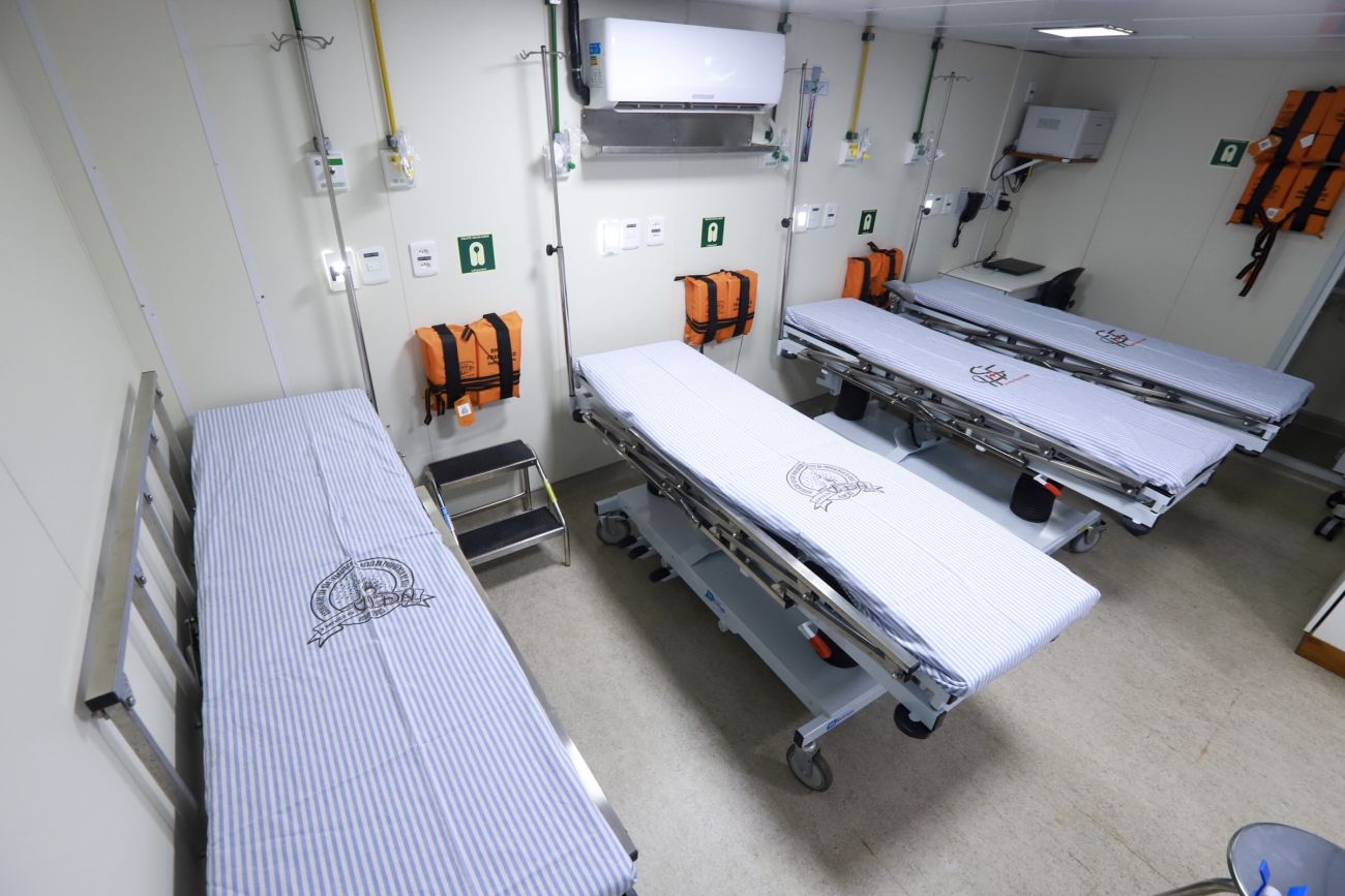 ESTRUTURA – O Barco Hospital Papa Francisco tem 32 metros de comprimento e contará com até 23 profissionais da área da saúde, com capacidade para até 30 tripulantes. Abriga salas para raio-x, mamógrafo, ecocardiograma, teste ergométrico, sala cirúrgica, laboratório de análises, farmácia, sala de vacinação, consultórios médicos, consultório oftalmológico e odontológico e leitos de internação.