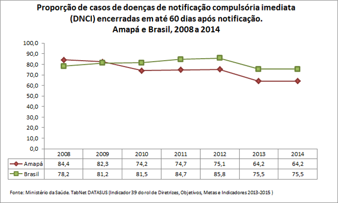 - Indicador 39: Proporção de casos de doenças de notificação compulsória imediata (DNCI) encerradas em até 60 dias após notificação