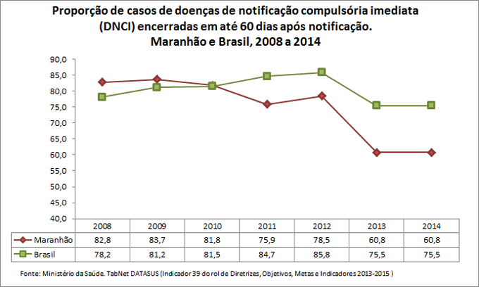 - Indicador 39: Proporção de casos de doenças de notificação compulsória imediata (DNCI) encerradas em até 60 dias após notificação