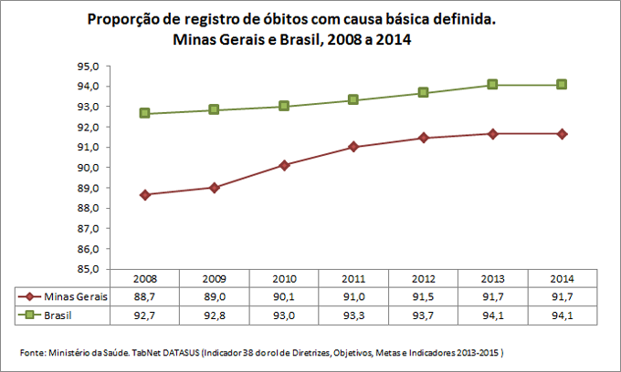 Indicador 38: PROPORÇÃO DE REGISTRO DE ÓBITOS COM CAUSA BÁSICA DEFINIDA