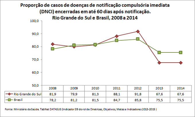 - Indicador 39: Proporção de casos de doenças de notificação compulsória imediata (DNCI) encerradas em até 60 dias após notificação