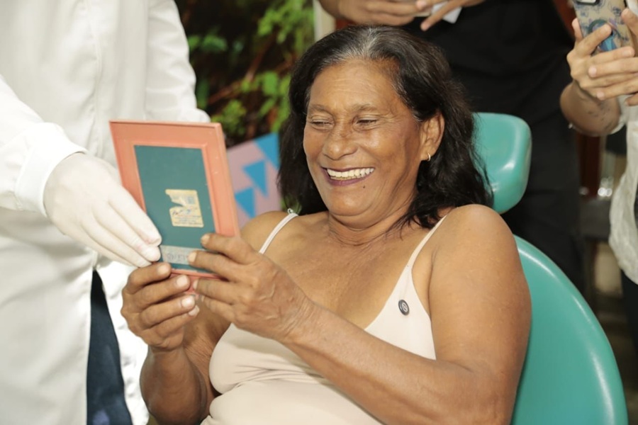 O caminho até a entrega não foi fácil. Dona Jane iniciou o tratamento no Centro de Especialidades Odontológicas (CEO) em fevereiro, mas por conta de traumas, dificuldades pessoais e medo de dentista, interrompeu várias vezes o processo. Foi com o apoio da equipe de serviço social do Governo do Estado que ela foi acolhida, incentivada a retomar as consultas e acompanhada até a conclusão do tratamento.