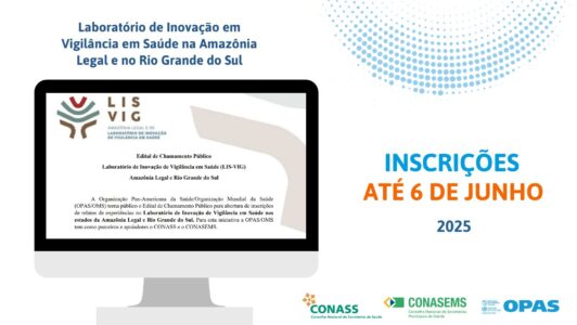 Foram prorrogadas até o dia 6 de junho as inscrições para o Laboratório de Inovação em Vigilância em Saúde (LIS-VIG), iniciativa voltada a experiências desenvolvidas nos territórios da Amazônia Legal e do Rio Grande do Sul. A chamada é promovida pela Organização Pan-Americana da Saúde (OPAS) em parceria com o Conselho Nacional de Secretários de Saúde (Conass) e o Conselho de Secretários Municipais de Saúde (Conasems).O objetivo do LIS-VIG é identificar e reunir iniciativas que contribuam para o fortalecimento e aprimoramento das ações de vigilância em saúde, por meio de soluções inovadoras que respondam aos desafios enfrentados em diferentes contextos locais.
