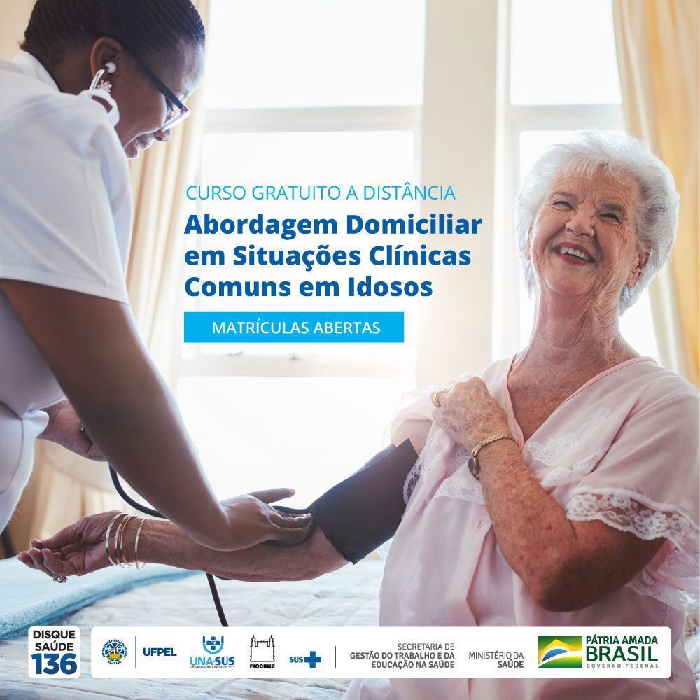 Já estão abertas as matrículas para os cursos Abordagem Domiciliar em Situações Clínicas Comuns em Idosos, da Universidade Federal de Pelotas (UNA-SUS/UFPel). O objetivo é qualificar a abordagem das principais situações clínicas em idosos no domicílio, melhorando a resolubilidade da rede de saúde.