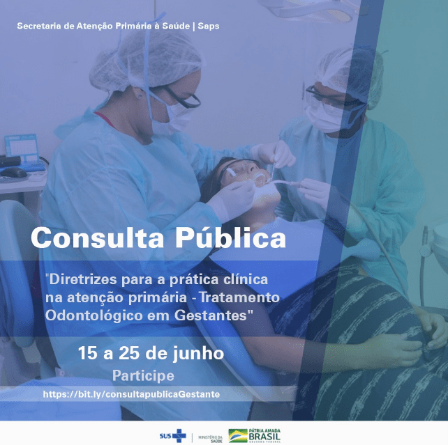 A promoção da saúde bucal da gestante é um importante passo para garantir o cuidado integral em saúde, fortalecendo a qualidade de vida da mãe e da criança. Pensando nisso, a Coordenação de Saúde Bucal do Ministério da Saúde disponibiliza, a partir dessa terça-feira (15/6) e até o próximo dia 25, a Diretriz Tratamento Odontológico em Gestantes para consulta pública. As contribuições serão avaliadas e incorporadas ao documento que dará suporte ao trabalho realizado na saúde bucal da Atenção Primária à Saúde. Clique aqui para ler o documento preliminar e aqui para participar da consulta.