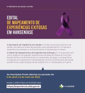 Com o objetivo de incentivar estratégias e estimular ações que contribuam para a qualificação do trabalho em saúde, controle da hanseníase e cuidado das pessoas acometidas pela doença, o Ministério da Saúde abriu, nesta terça-feira (5), as inscrições para o edital de Mapeamento de Experiências Exitosas em Hanseníase. Os interessados têm até o dia 6 de maio para preencher o formulário e realizar a inscrição.
