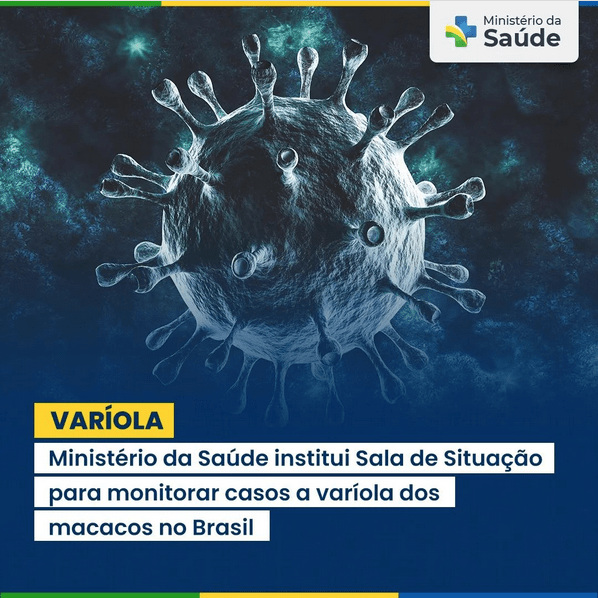 Não há notificação de casos suspeitos da doença no paísO Ministério da Saúde estabeleceu, nesta segunda-feira (23), uma Sala de Situação para monitorar o cenário da varíola dos macacos (monkeypox) no Brasil. A medida tem como objetivo elaborar um plano de ação para o rastreamento de casos suspeitos e na definição do diagnóstico clínico e laboratorial para a doença.