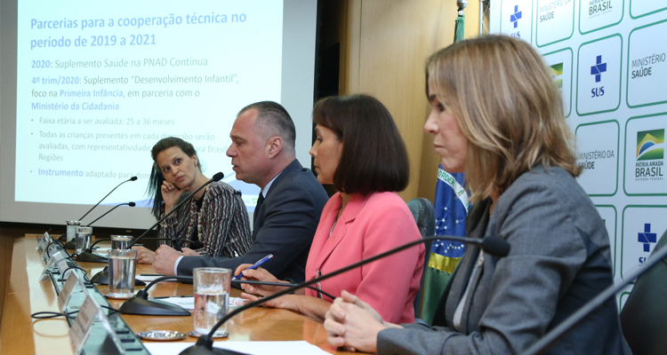 O Ministério da Saúde e o Instituto Brasileiro de Geografia e Estatística (IBGE) formalizaram, nesta segunda-feira (9/12), termo de Cooperação Técnica de Pesquisa em Saúde de Base Domiciliar Nacional para coletar informações importantes sobre a saúde da população e a capacidade do Sistema Único de Saúde (SUS), com foco na Atenção Primária à Saúde (APS). O convênio contará com R$ 30,1 milhões do Ministério da Saúde para a realização de três pesquisas: a Pesquisa Nacional por Amostra de Domicílios Contínua (PNAD Contínua), a Pesquisa Nacional de Demografia e Saúde (PNDS) e a Pesquisa de Assistência Médico-Sanitária (AMS). Com a cooperação, o Ministério da Saúde aproveita inquéritos já realizados pelo IBGE para incluir assuntos relevantes para a avaliação do momento atual do SUS. A definição das pesquisas e seu conteúdo é uma parceria interministerial entre o Ministério da Saúde e o Ministério da Cidadania.