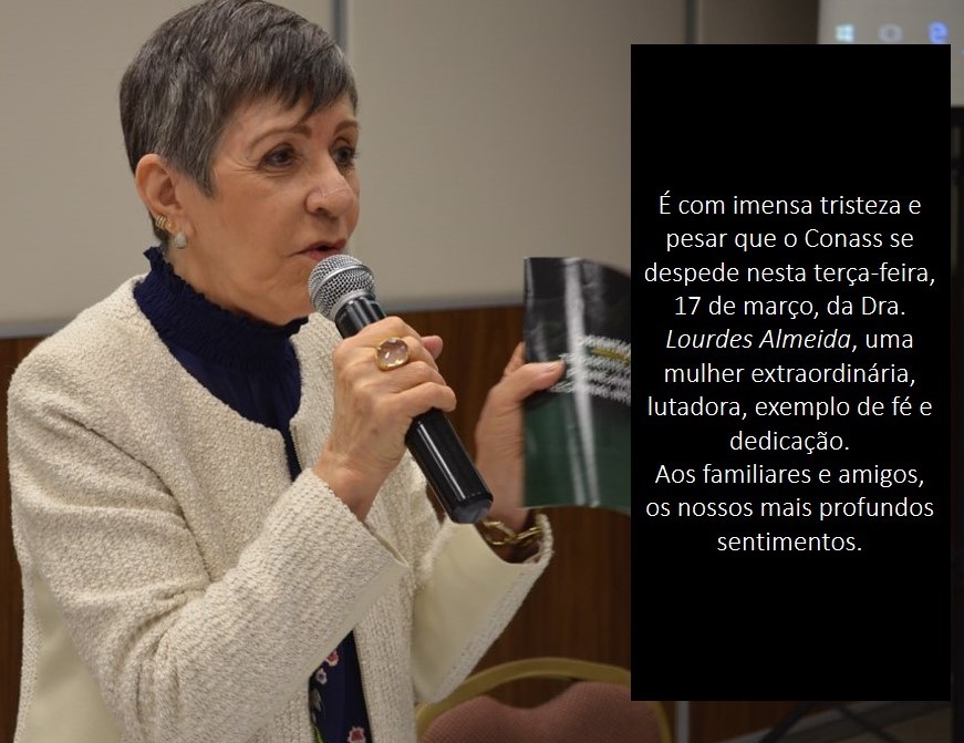 É com imensa tristeza e pesar que o Conass se despede nesta terça-feira, 17 de março, da Dra. Lourdes Almeida, uma mulher extraordinária, lutadora, exemplo de fé e dedicação.