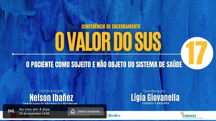 Chegamos ao final de mais um ciclo de aprendizado, troca de conhecimentos e valorização da ciência. A temporada #2 de “O valor do SUS” chega ao fim na próxima segunda (29) com uma conferência especial do Prof. Nelson Ibañez (Butantan e Santa Casa de SP) com o tema “O usuário como sujeito e não objeto do sistema de saúde”. Vamos concluir uma série de conversas sobre limites e possibilidades do sistema de saúde brasileiro. Ao longo do curso debatemos os mais diversos temas relacionados a um cuidado cada vez mais resolutivo e qualificado.