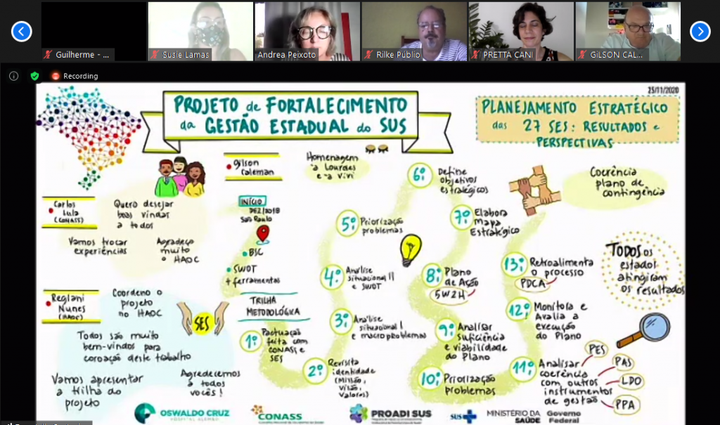 Em 2020, com a pandemia da Covid-19, as atividades do projeto foram reorientadas a fim de apoiar tecnicamente as equipes na revisão do planejamento estratégico das SES e dos instrumentos de gestão, com vista a adequá-los à nova realidade imposta pela pandemia do novo coronavírus.
