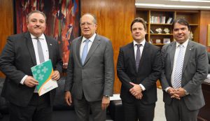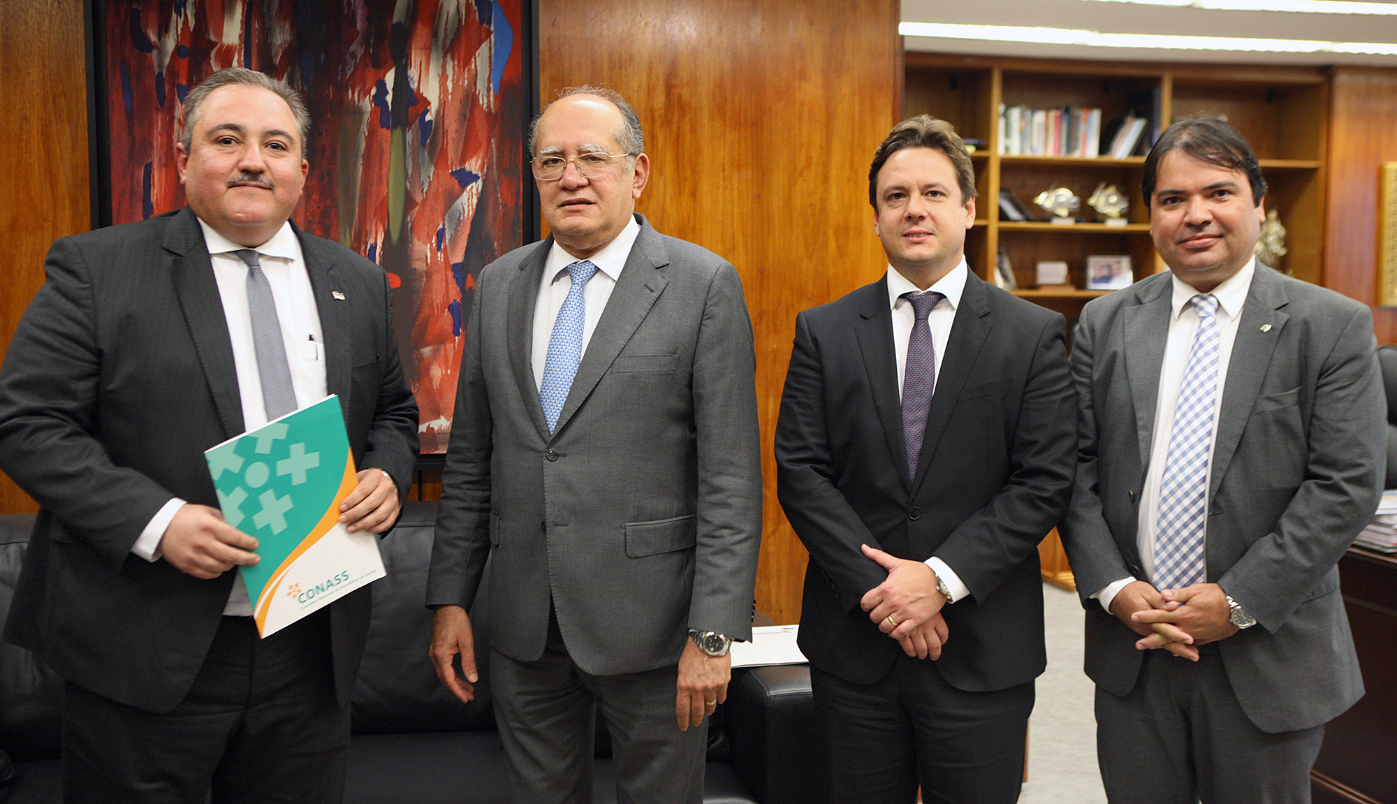 O procurador-geral do Estado de Pernambuco, Ernani Medicis, e o secretário estadual de Saúde, André Longo, participaram de audiência com o ministro Gilmar Mendes, do Supremo Tribunal Federal (STF), nesta quarta-feira (8/5), em Brasília. Representando respectivamente o Colégio Nacional de Procuradores dos Estados e do Distrito Federal (Conpeg) e o Conselho Nacional dos Secretários de Saúde (Conass), Ernani Medicis e André Longo apresentaram ao ministro memoriais referentes aos recursos representativos em saúde pública com julgamento pautado para o próximo dia 22 de maio.Esses recursos tratam de temas de suma importância para a saúde pública no Brasil: fornecimento de medicamentos de alto custo; medicamentos sem registro na Anvisa; as competências dos entes federados junto ao Sistema Único de Saúde (SUS); e o bloqueio de valores em contas dos fundos de saúde.