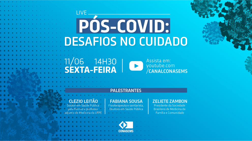 A ideia do encontro virtual é promover uma troca de experiências e saberes na condução clínica da pacientes com síndrome pós-covid. A transmissão ao vivo acontecerá no canal do Conasems no YouTube e o chat estará aberto para que as perguntas sejam respondidas durante a live.