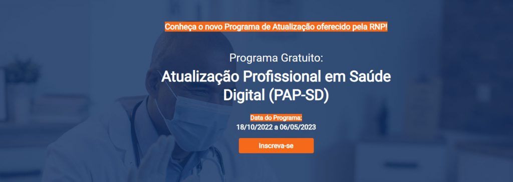 Com o Programa de Atualização Profissional em Saúde Digital (PAP-SD), que será realizado no período de 18/10/2022 a 06/05/2023, você irá aperfeiçoar seus conhecimentos acerca do tema, a partir de um conteúdo inédito elaborado pela Rede Universitária de Telemedicina (RUTE/RNP), que opera no Brasil há 16 anos.