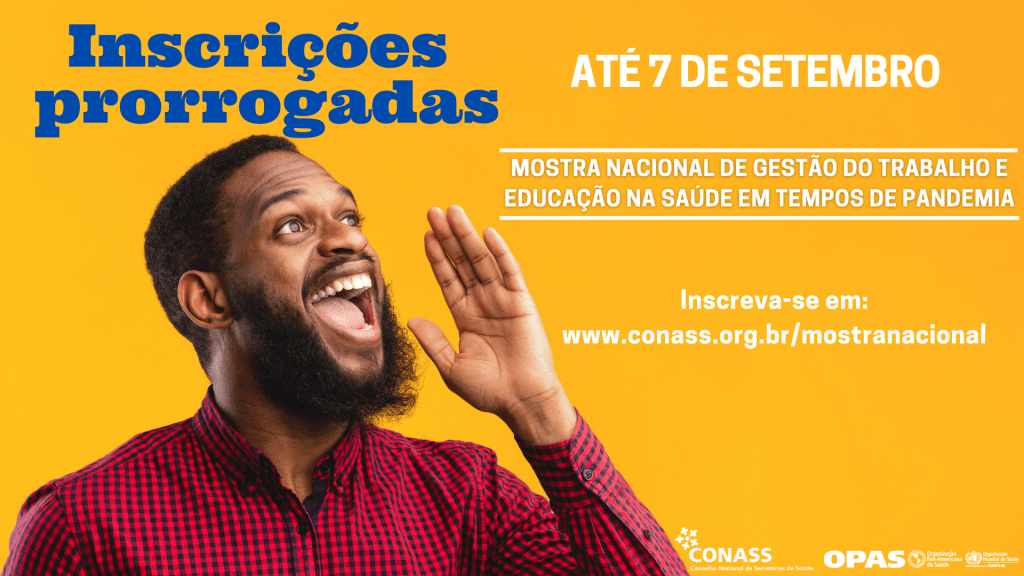 Foram PRORROGADAS até o dia 07 de setembro as inscrições para a Mostra Nacional de Gestão do Trabalho e Educação na Saúde em Tempos de Pandemia. Corre que ainda dá tempo!