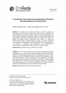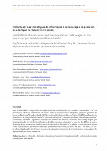 Estudos e pesquisas BASES DE DADOS DE LIVROS ELETRÔNICOS, MONOGRAFIAS E TESES Detalhes Escolas Estaduais de Saúde Pública: Uma Análise sobre suas Contribuições para a Implementação e o Fortalecimento do Sistema Único de Saúde Detalhes Desafios para a Formação Técnica em Saúde na Educação a Distância Detalhes A Telessaúde e seus impactos na formação continuada dos profissionais de saúde em rede Detalhes A capilaridade da Política Nacional de Educação Permanente em Saúde no Brasil Detalhes Implicações das tecnologias de informação e comunicação no processo de educação permanente em saúde Detalhes