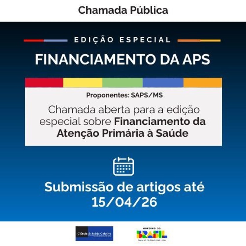 A Revista Ciência & Saúde Coletiva torna pública a chamada para submissão de artigos para o suplemento temático sobre Financiamento da Atenção Primária à Saúde. A edição especial tem como objetivo recolocar na agenda de pesquisa o financiamento da Atenção Primária à Saúde (APS), estimulando a produção e a publicação de estudos e pesquisas que possam contribuir para o fortalecimento da APS no SUS.