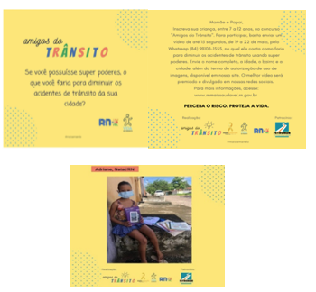 Maio Amarelo – concurso “amigos do trânsito” Consistiu na promoção de um concurso entre crianças de 07 a 12 anos de idade, no qual gravaram-se vídeos falando sobre o que elas fariam para reduzir os acidentes de trânsito do seu município. A vencedora ganhou um Tablet e materiais educativos sobre o trânsito.