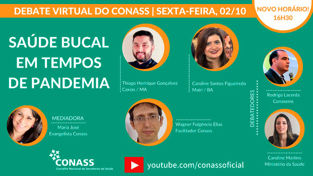 O Debate Virtual do Conass desta sexta-feira (02/10), às 16h30, irá apresentar experiências exitosas de municípios brasileiros na estruturação dos serviços de Saúde Bucal e discutir desafios e caminhos na organização dos serviços odontológicos em rede. O objetivo é apoiar profissionais e gestores na estruturação das ações e dos serviços de Saúde Bucal, buscando responder de forma efetiva à pandemia de Covid-19, o que tem sido um grande desafio.