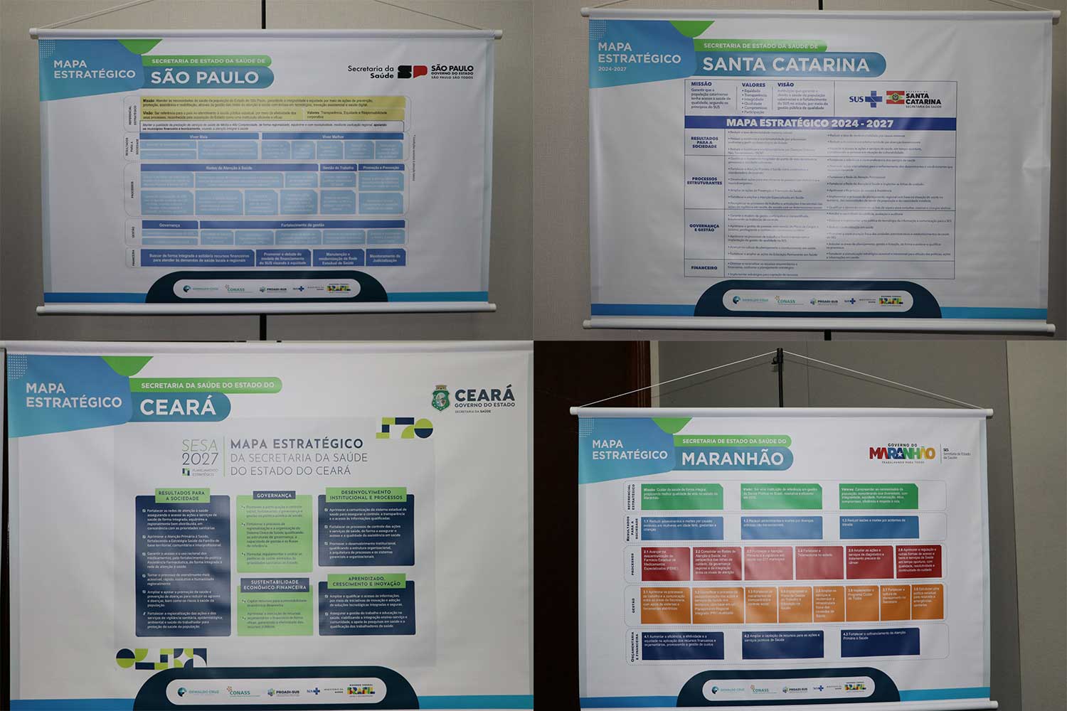 A programação do Seminário contemplou a apresentação dos resultados do projeto no triênio 2020 – 2023; dinâmicas de integração e troca de experiências, além da exposição de banners dos mapas estratégicos desenvolvidos pelas secretarias estaduais de saúde.