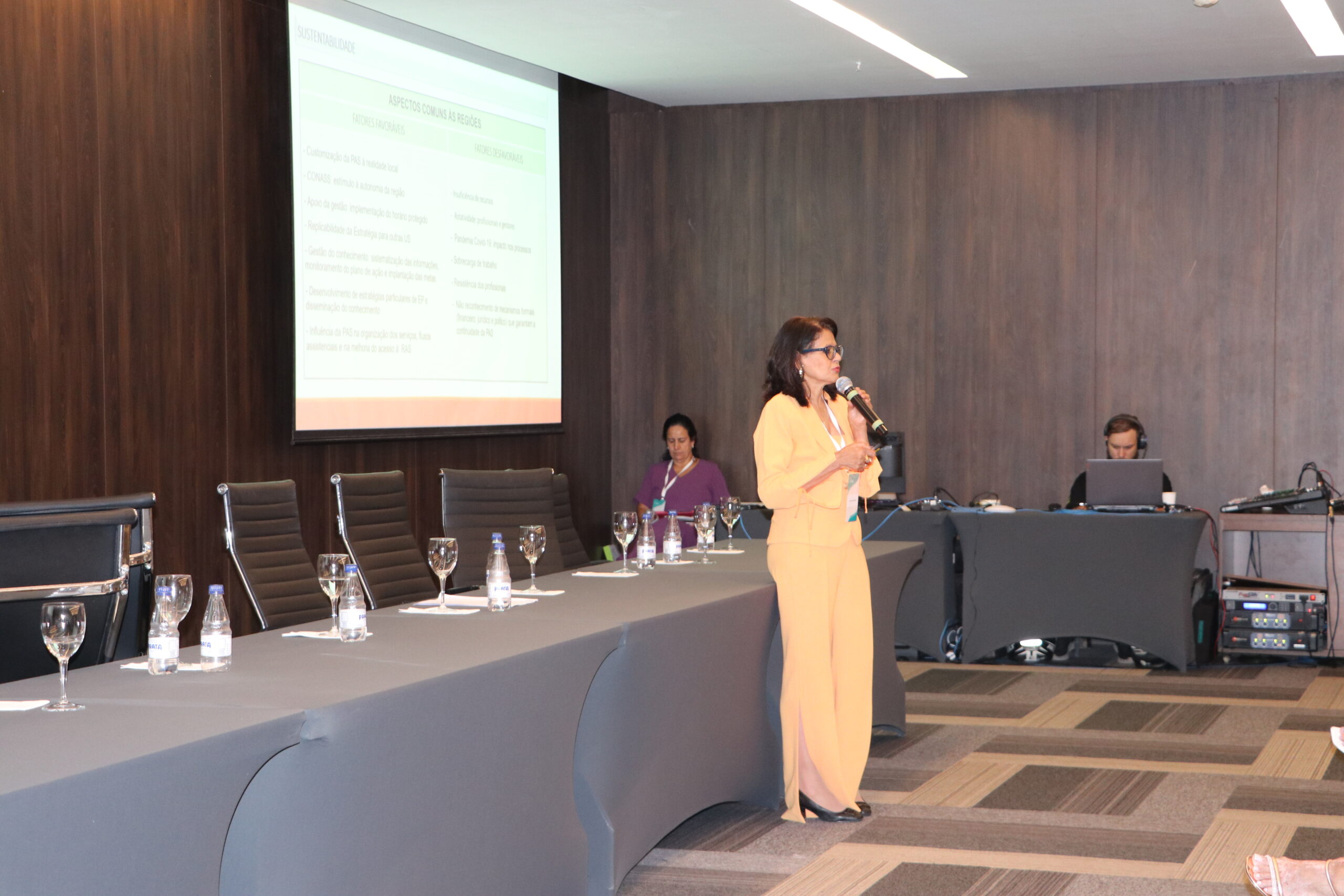 Em sua apresentação, a assessora técnica do Conass explicou o que é a Planificação da Atenção à Saúde (PAS) e as bases normativas e operacionais da PAS. Falou a respeito do processo de implantação, os papéis da Atenção Primária à Saúde na PAS e a construção social da APS. Foram apresentados alguns resultados da Região Entorno Sul – GO.