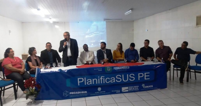 O Estado de Pernambuco dá mais um passo no processo de qualificação e integração das redes de Atenção Primária e Especializada. Nesta segunda-feira (08.07), o secretário executivo de Gestão Estratégica e Participativa, Humberto Antunes, assina o termo de compromisso com representantes dos municípios participantes do projeto de Planificação da Atenção à Saúde (Planifica SUS). A iniciativa faz parte do Projeto de Fortalecimento da Gestão Estadual do Sistema Único de Saúde (SUS) e vai contemplar, inicialmente, as cidades de Belo Jardim, Pesqueira, Alagoinha, Tacaimbo, São Bento do Una, Poção, Cachoeirinha e Sanharó, integrantes da IV Gerência Regional de Saúde (Geres). A cerimônia de assinatura aconteceu na Escola Estadual Professor Donino, localizada na Av. Coronel Antônio Marinho, no bairro da Bela Vista, em Belo Jardim. A programação segue até o dia 12 com a programação voltada para realização da oficina preparatória do Planifica SUS.