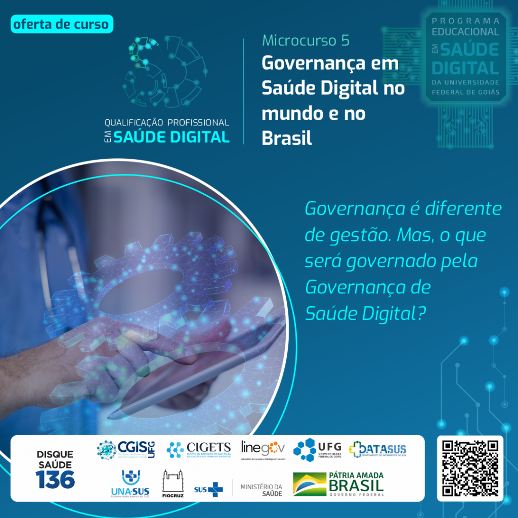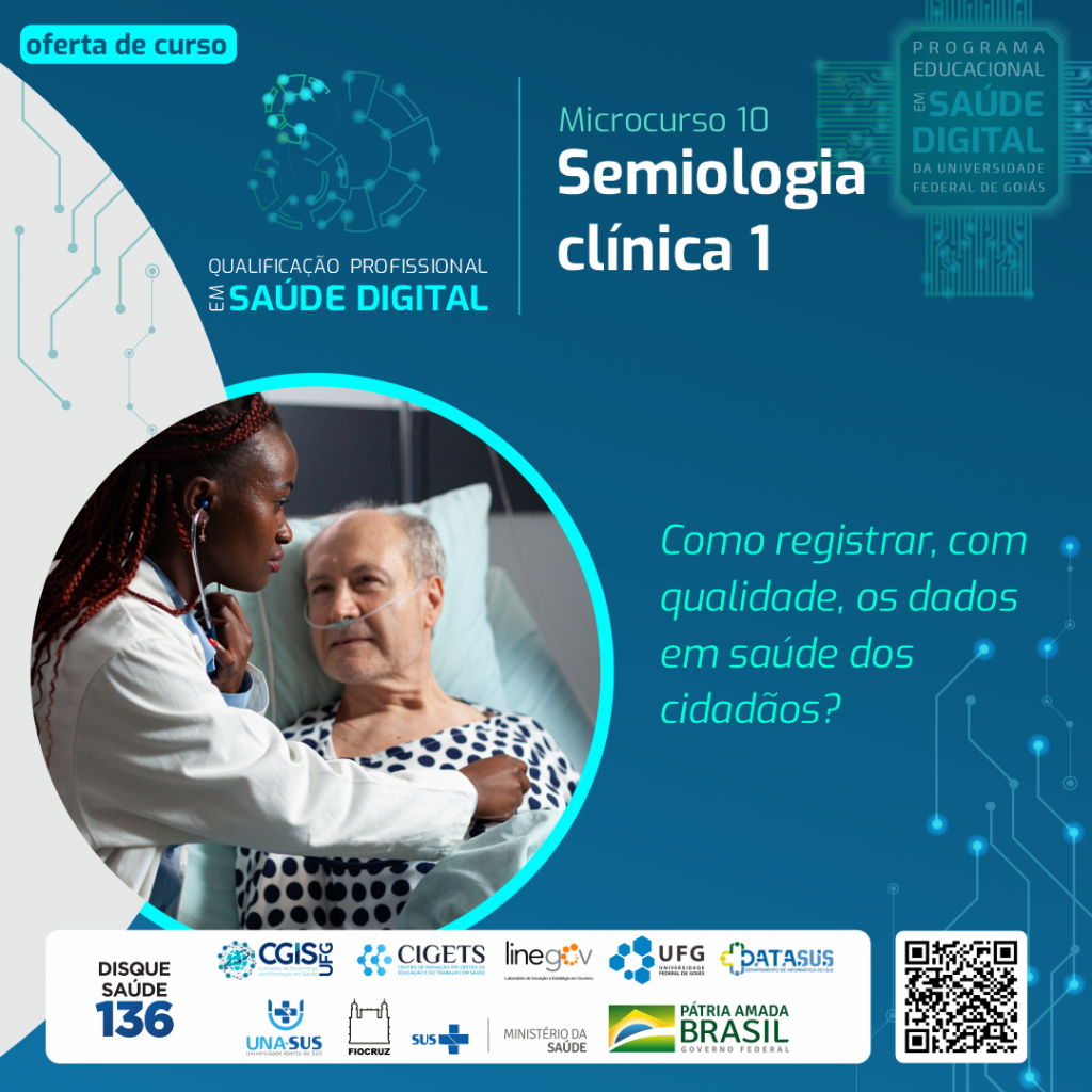 Os cursos abordam os conceitos de governança, pensamento computacional, sistema de saúde brasileiro, semiologia clínica e tecnologias digitais da informação e comunicação (TDIC).