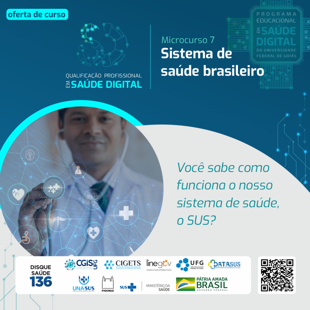 O objetivo deste curso é proporcionar a gestores, profissionais de saúde e da tecnologia da informação em saúde, conhecimentos estruturais a respeito do Sistema Único de Saúde (SUS) para que consigam associar princípios e diretrizes, políticas e a concepção de redes de atenção no SUS à concepção de saúde digital, proporcionando habilidades tanto no manuseio de TICs no contexto de assistência e gestão quanto para orientação e engajamento do paciente ao uso das mesmas.