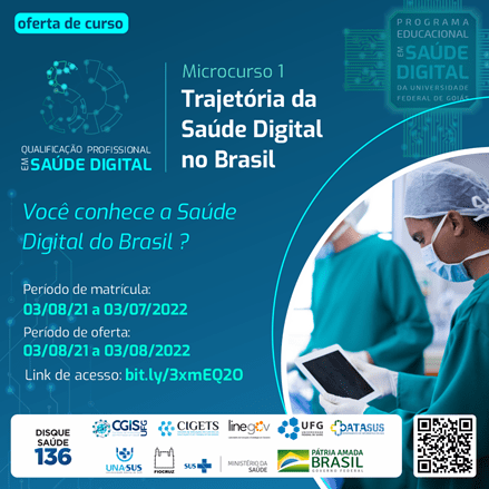 Com carga horária de 10h, o curso tem como objetivo preparar os profissionais e gestores do sistema de saúde brasileiro para a implementação da Saúde Digital no Brasil, a partir do reconhecimento de seus princípios, dos benefícios, da confiança e segurança para a sua utilização, com foco na qualidade do atendimento ao cidadão.
