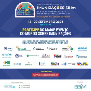 O maior evento do mundo sobre imunizações! A XXVI Jornada Nacional de Imunizações, acontece de 18 a 20 de setembro, em Recife (PE). Este ano, terá uma novidade: um curso pós-evento, dia 21/09, para alunos da graduação de enfermagem, medicina, farmácia e para residentes.